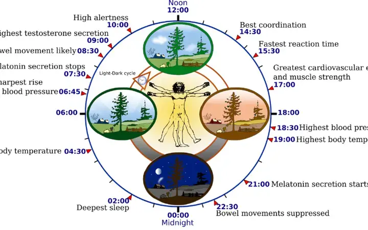 • التعرُّض للضوء: يُسرّع ضوء الصباح من مرحلة الساعة البيولوجية؛ بينما يُؤخرها الضوء الاصطناعي والشاشات في المساء.