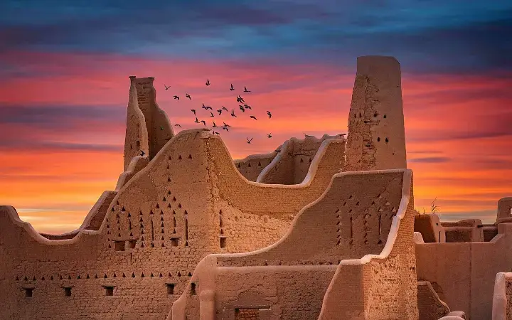 تحتل الدرعية، وهي موقع مدرج على قائمة اليونسكو على أطراف الرياض، مكانة خاصة في ذاكرة السعوديين. كانت الدرعية في القرن الثامن عشر مقرًا لأول سلالة سعودية، وقد بُنيت على طول وادي حنيفة، وهو وادي خصب كانت مياهه تغذي الحياة والتجارة في الصحراء. لا تزال أبراج المدينة المبنية من الطوب اللبن وأزقة الطريف المظللة تهمس بذكرى عصر كانت فيه الثقافة والإيمان متشابكين بشكل سلس مع البيئة.