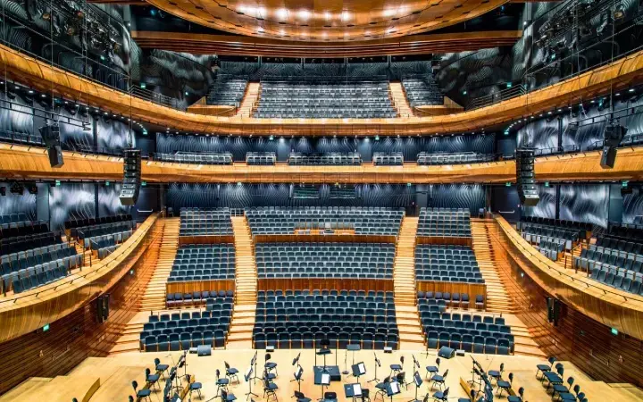 • مسرحان متعددا الاستخدامات يتسعان لـ 450 مقعدًا، قابلان للتكيف مع الحفلات الموسيقية الأوركسترالية والعروض المحلية والمؤتمرات.